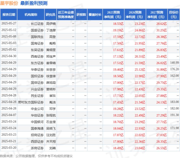 最新盈利预测明细如下: