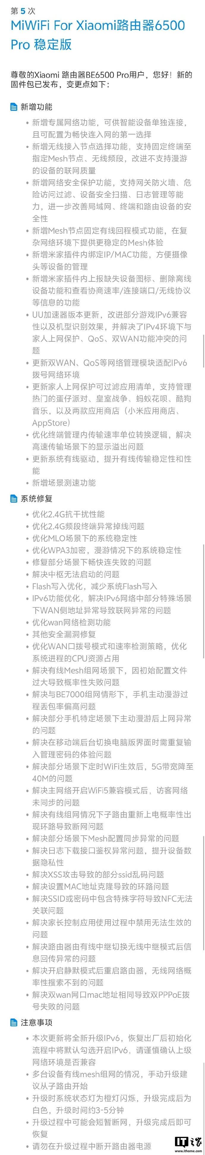 IT之家10月5日消息,小米路由器BE6500Pro现已推送全新固件更新,新增多项功能并进行系统修复。